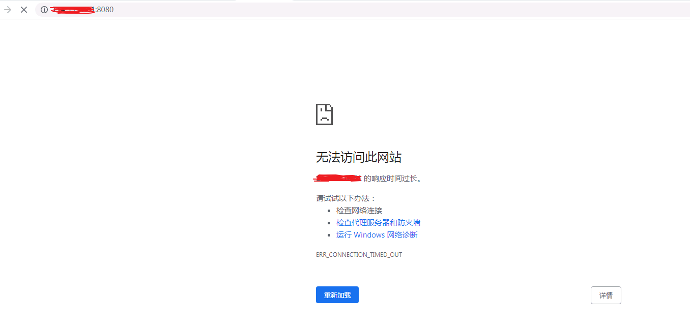 理论上,按照上述步骤操作后,应该可以通过 http://ip:8080 正常访问tomcat了。但是,我的页面未加载出来。如下,也没有像别人遇到的404之类的错误。