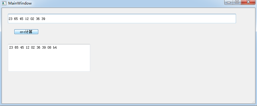 {QByteArray aa,bb;QString str0;QString str1;bool ok;unsigned char crcBuf[50];unsigned short crc;int i;str0 = ui->inputDataEdit->text();string_to_hex(str0,aa);for(i=0;i>8;aa[i+1] = crc &0x00ff;//aa = str0.toLocal8Bit();ui->disQtext->setText(aa.toHex(' '));}