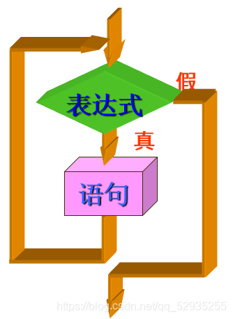 while的语言结构简洁,当符合循环条件(表达式)时,系统将执行循环体(语句)。执行过程如图所示: