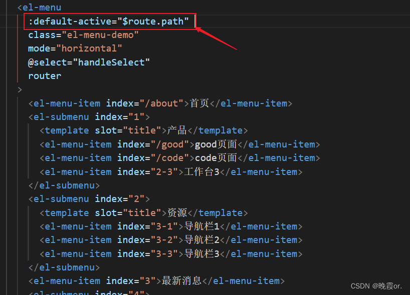 所以将el-menu-item的index设置成了path路由,default-active则是当前激活菜单的index,将**default-active绑定为$route.path,**这样即使刷新也不会失去高亮显示。
