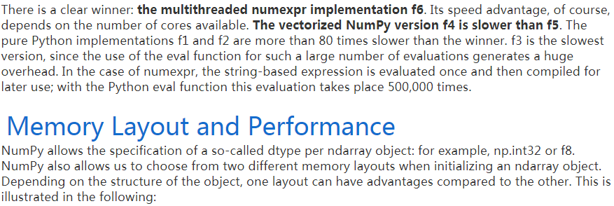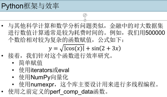 •如果某个应用对于效率非常敏感,那么一般来说应当检查两个方面:1)使用了正确的实现框架,2)使用了正确的效率库。在Python中可以使用很多种库来提升效率。本章将介绍如下的库: