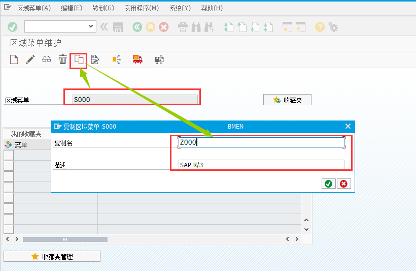 复制当前标准菜单(没有更改过一般是S000)到Z000