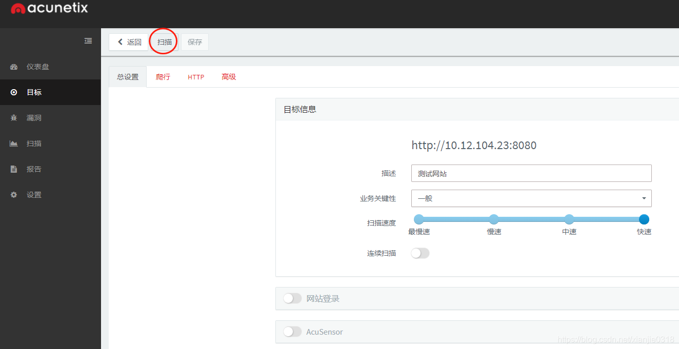 5、AWVS Web漏洞扫描工具地址是:https://localhost:3443/,默认端口是3443,这个可以改,具体看你自己。