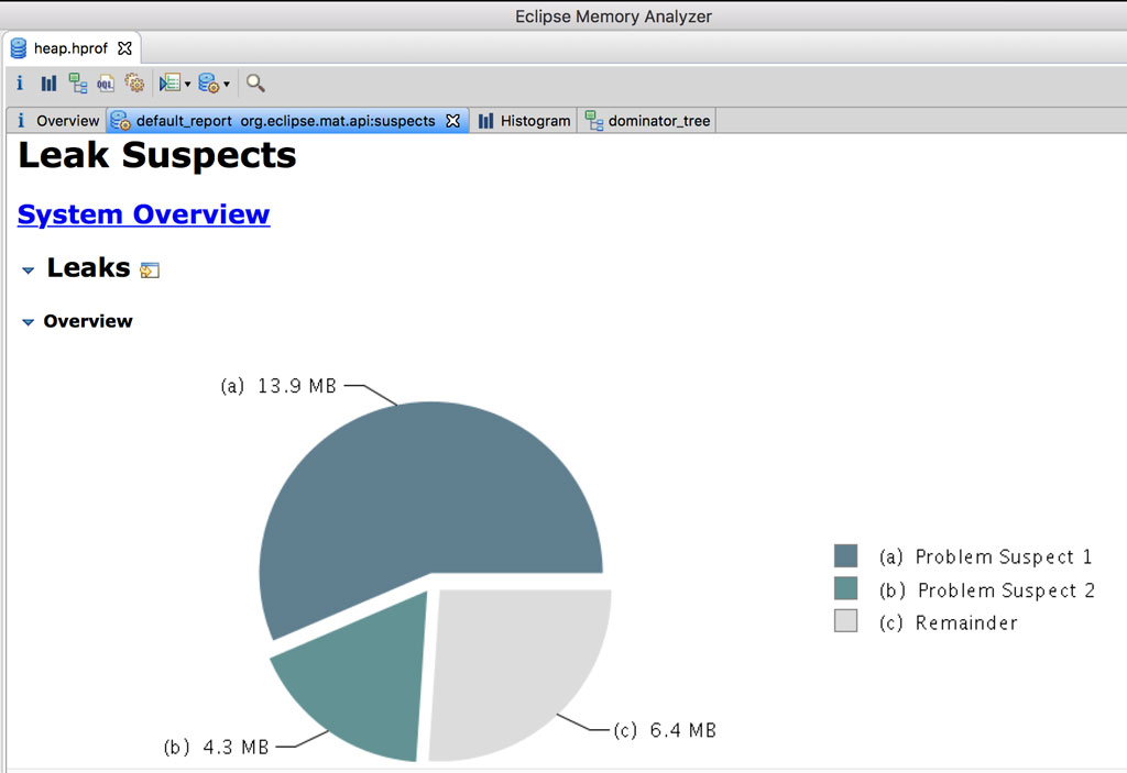 找开上述导出的内存溢出文件即可进行分析,如下图的溢出源头分析: