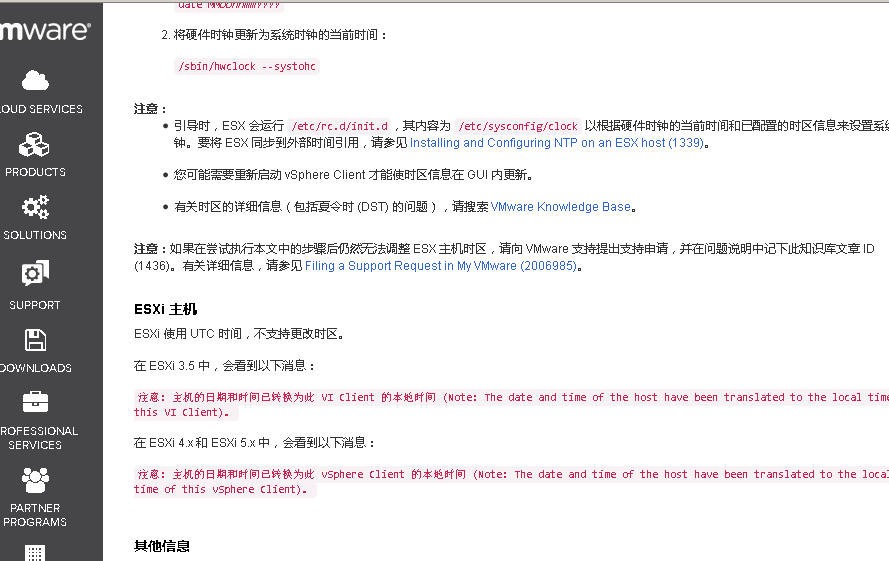 最后查了下vmware资料发现ESXI默认都是UTC时间,并且无法更改,更坑的是官方也是这样说的,只有4.X下的版本的破解办法,4.X以后官方也无解法。