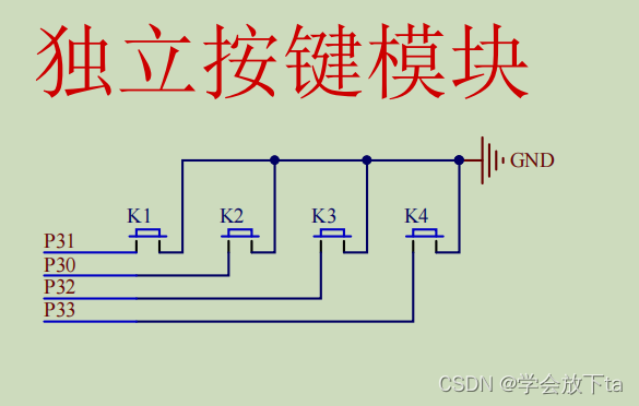 1、观看引脚图,看到K1、2、3、4都是连接在GND上,所以P30等接收到低电平就是按下了按键。