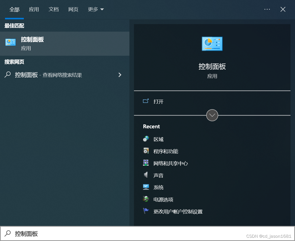 在Windows 10系统中,点击左下角的“开始”按钮,输入“控制面板”并找到控制面板。注意,是控制面板,不是齿轮图标的设置按钮。