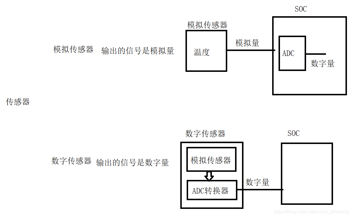 ADC:模数转换器:将模拟信号转换为数字信号的一个器件。