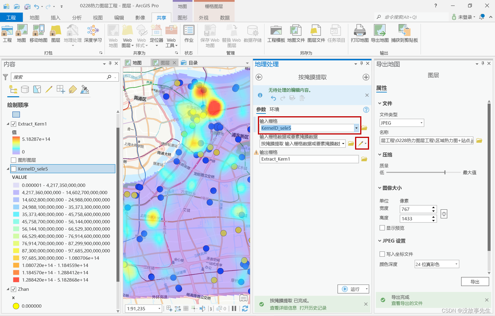 本文描述的方法适用于:已有大范围的数据,画出来了热力图的图层,但希望获得一个小区域的局部热力图且小区域形状不规则。