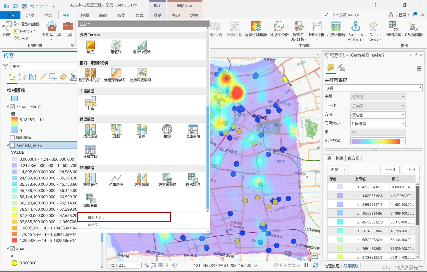 3.最后点击运行即可得到结果,符号系统(图的颜色分配)需要另行设置。