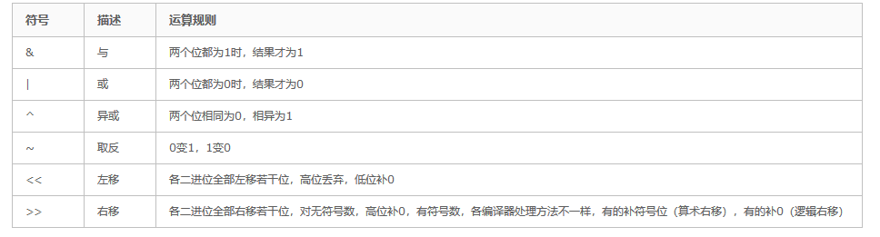不同长度的数据进行位运算:如果两个不同长度的数据进行位运算时,系统会将二者按右端对齐,然后进行位运算。