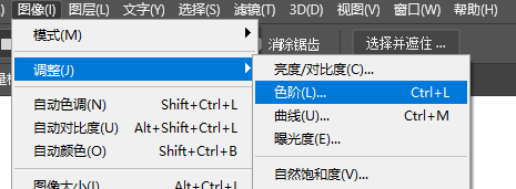 在“图像”中点击选中“色阶”(或者使用快捷键“ctrl+L”直接调出“色阶”面板)