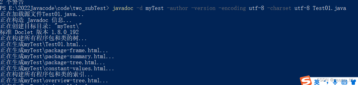 还有文档注释/*+enter (就是/*+回车) 这里的文档注释可以通过javadoc工具解析来生成一个网页