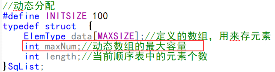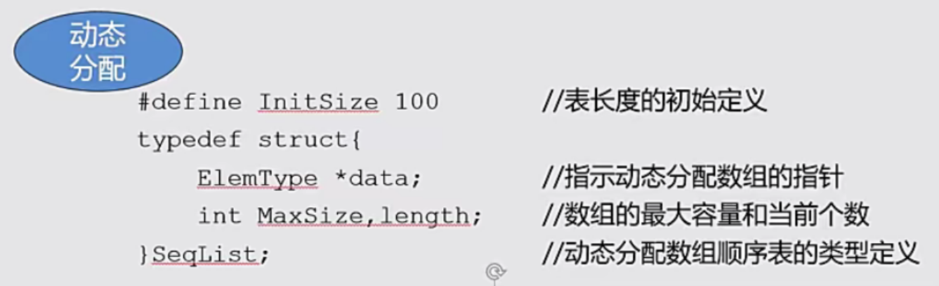 typedef struct {ElemType data[MAXSIZE];//定义的数组,用来存元素int length;//当前顺序表中的元素个数