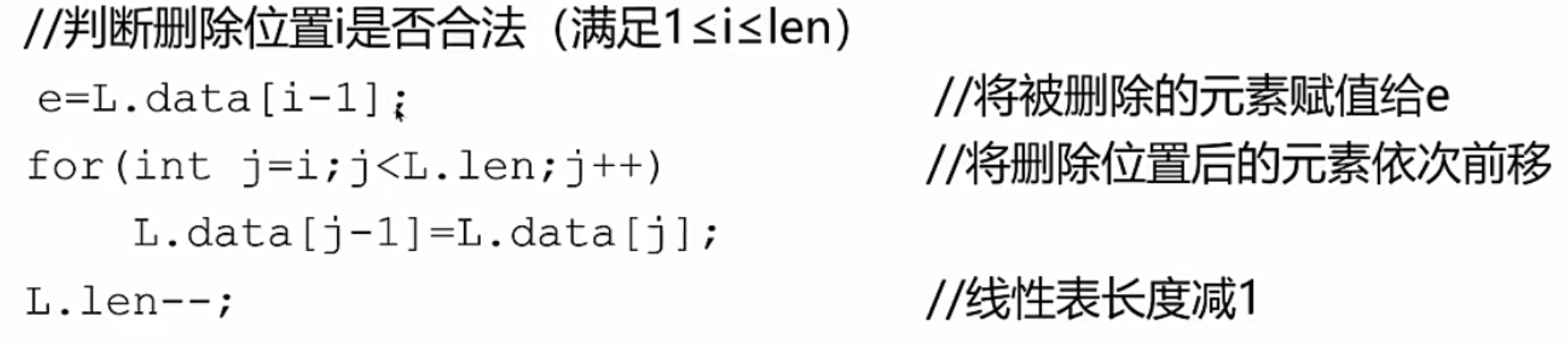 {if (i<1 || i>L.length){return false;}if (L.length == 0)//顺序表中无元素{return false;}elem = L.data[i-1];//删除的第i个元素赋值给elemfor (int j = i;j