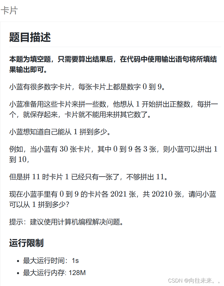 审题:0到9的卡片个有2021张,所有卡片的总数为20210,问用这20210个数能从1拼到多少
