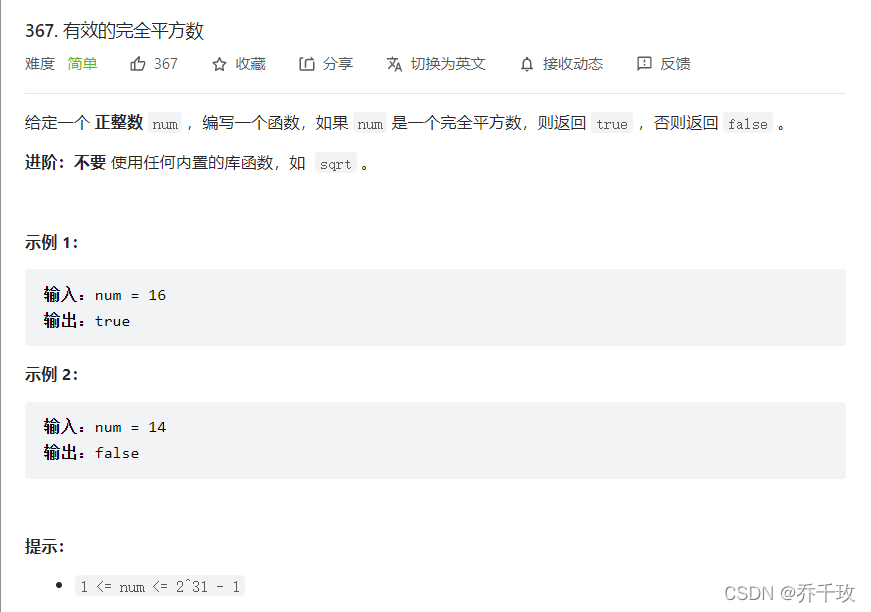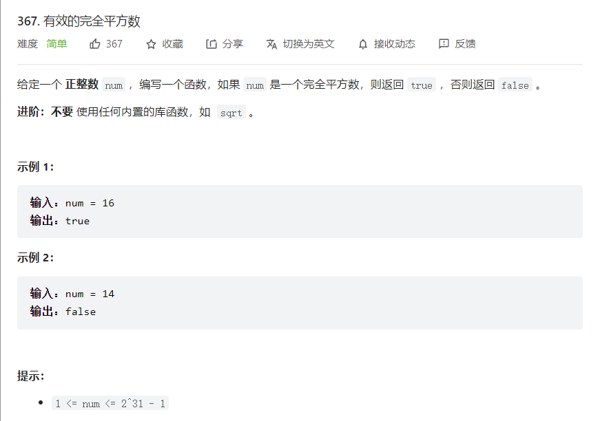 367. 有效的完全平方数