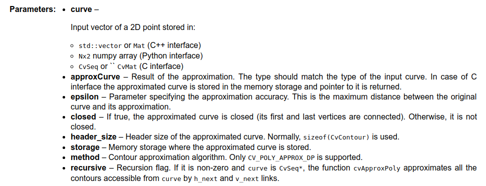 cv2.approxPloyDP函数,它用来计算近似的多边形框。该函数有三个参数: