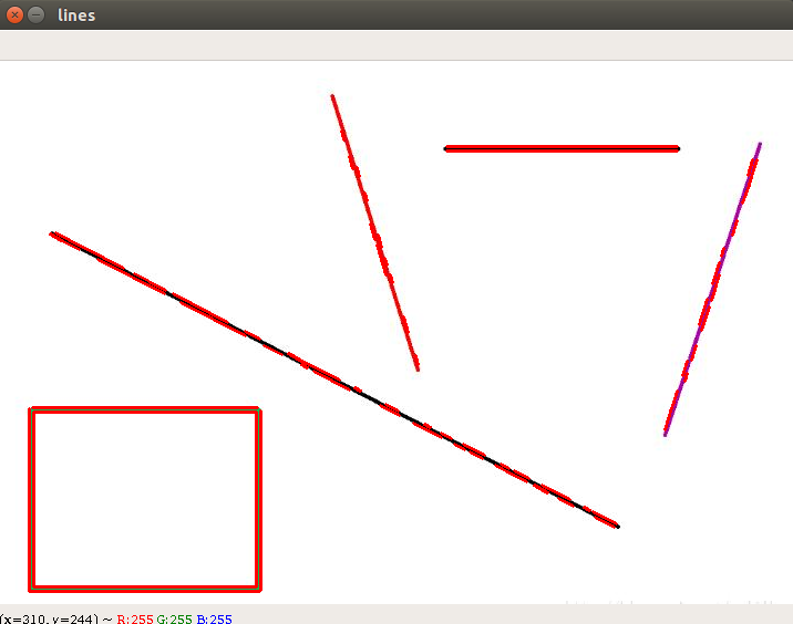 该函数返回一个numpy.array类型,形状为[num,1,4],每一行对应一条直线,每条直线形状为(1,4),这4个数值表示起始点和终止点坐标。
