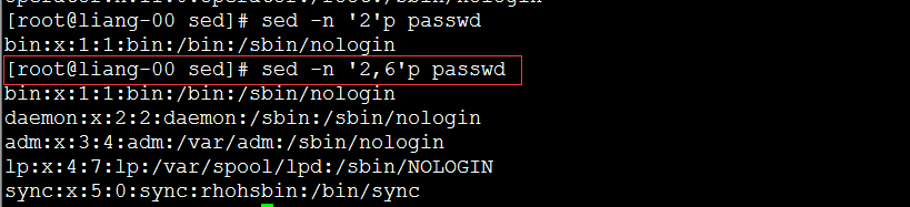 sed -n ‘2,6’p passwd 打印二到六行。