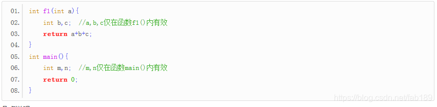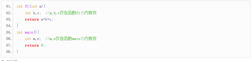 3) 可以在不同的函数中使用相同的变量名,它们表示不同的数据,分配不同的内存,互不干扰,也不会发生混淆。