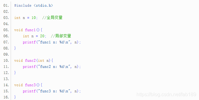 5) 当全局变量和局部变量同名时,在局部范围内全局变量被“屏蔽”,不再起作用。或者说,变量的使用遵循就近原则,如果在当前作用域中存在同名变量,就不会向更大的作用域中去寻找变量。