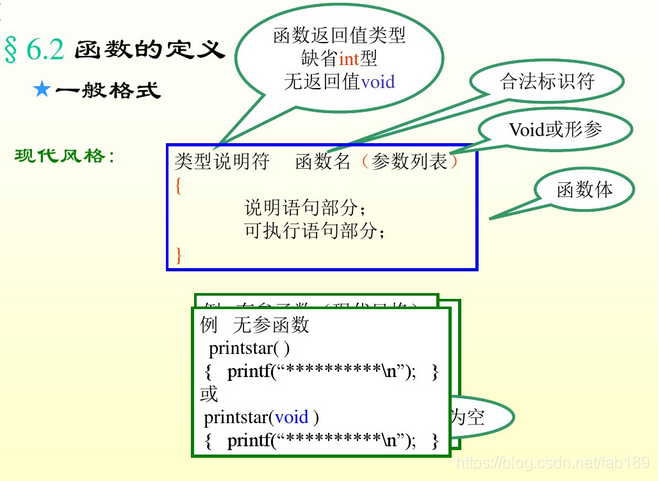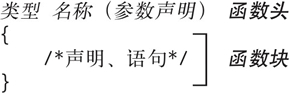 在上述格式中,“参数声明”是一个以逗号分隔、由函数参数声明组成的列表。如果该函数没有参数需要传入,则这个列表为空,或者仅有关键字 void。