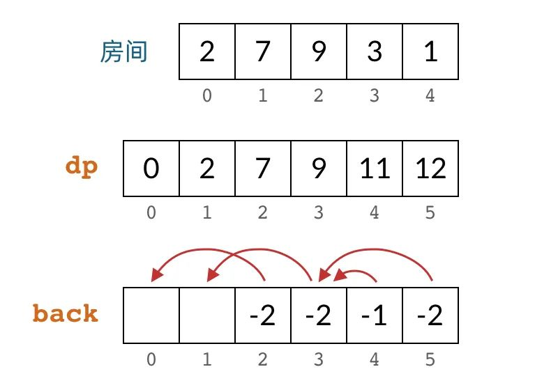 那么,我们尝试使用「DP 数组」+「back 数组」的方案。