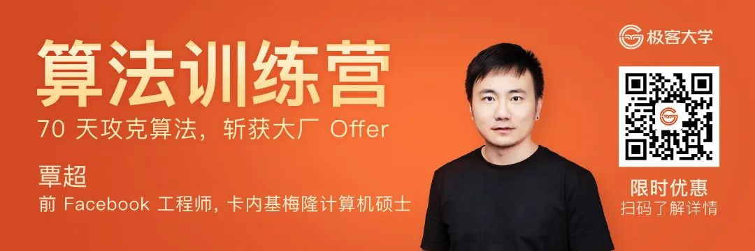 这里推荐给大家前 Facebook 工程师覃超和极客时间联合开设的《算法训练营》。