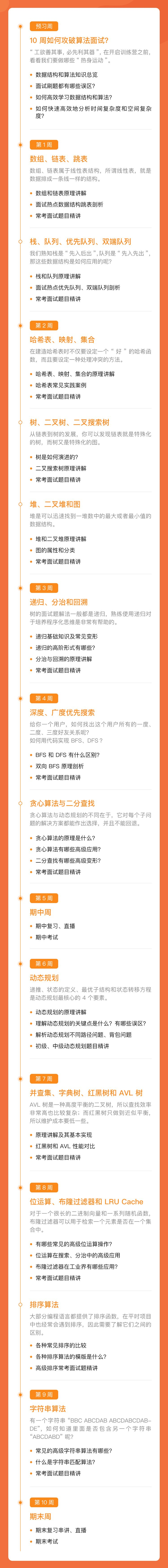 现在,算法训练营已经可以满足程序员跳槽、升职、加薪、提升编程内功的需求。在内容方面,它不仅涵盖常见的算法面试题精讲,还包括数据结构和算法的理论知识的讲解、算法在实际工程上的应用,加入了很多高级数据结构(比如 红黑树、AVL、跳表),以及很多高阶算法,一次性将数据结构和算法的方方面面讲透。
