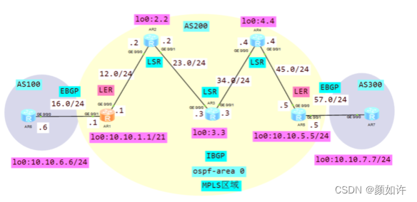 interface GigabitEthernet0/0/1ip address 192.168.34.3 255.255.255.0 mplsmpls ldp
