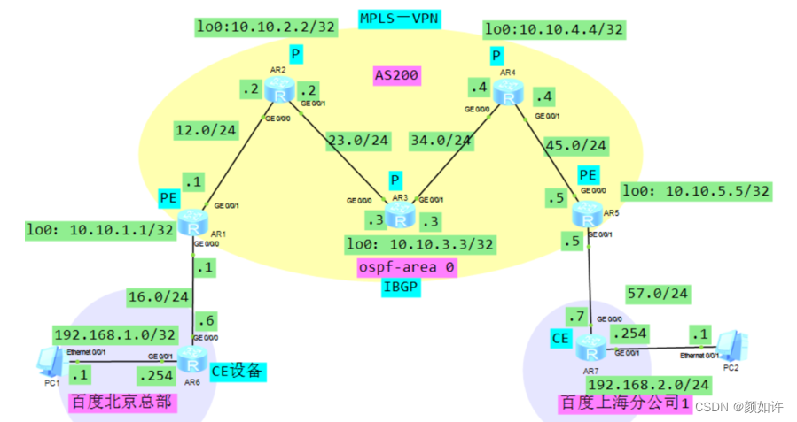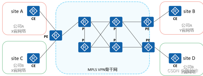 P设备--运营商骨干设备 PE设备--运营商边界设备(该设备与企业客户设备相连)