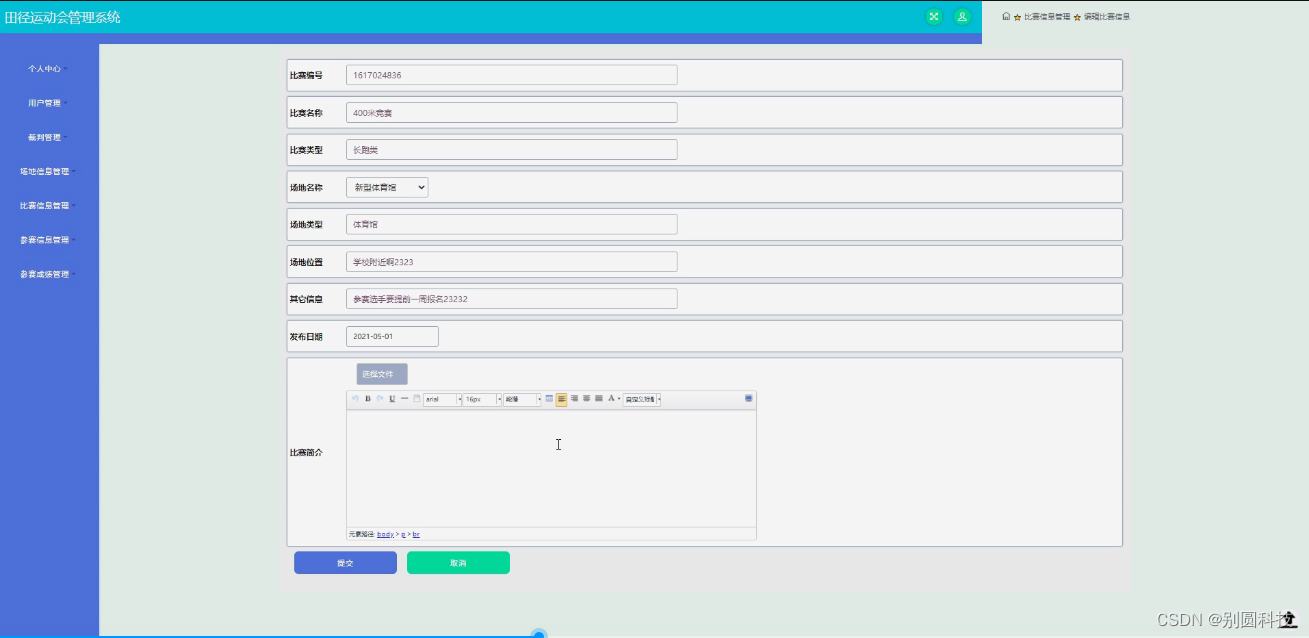 JAVA毕设项目田径运动会管理系统(java+VUE+Mybatis+Maven+Mysql)