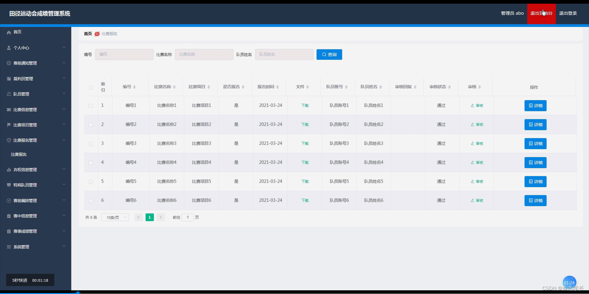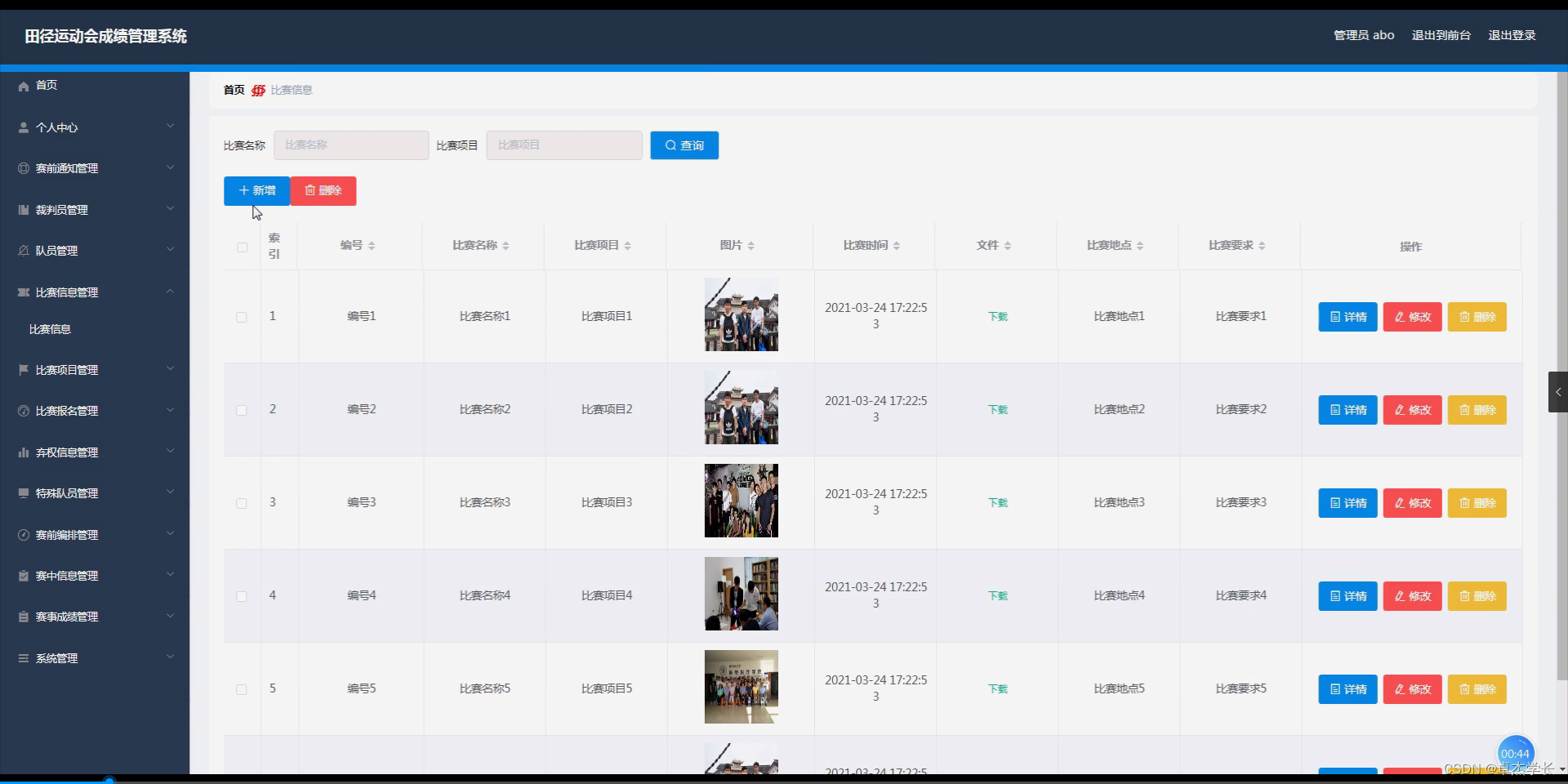 JAVA计算机毕业设计田径运动会成绩管理系统(附源码、数据库)