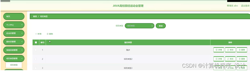 项目类型管理,在项目类型管理页面可以对索引、项目类型等内容进行详情,修改和删除操作,如图5-10所示。