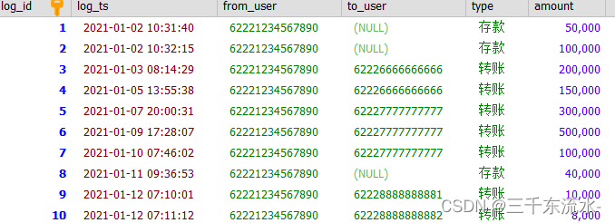 2.找出相同收付款人5天内连续转账3次以上的记录