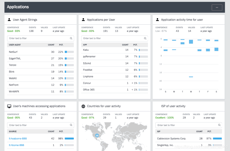 First Exabeam创建正常用户行为的基准。通过使用机器学习和行为建模,Advanced Analytics为组织的所有用户学习应用程序活动类型(图6)。