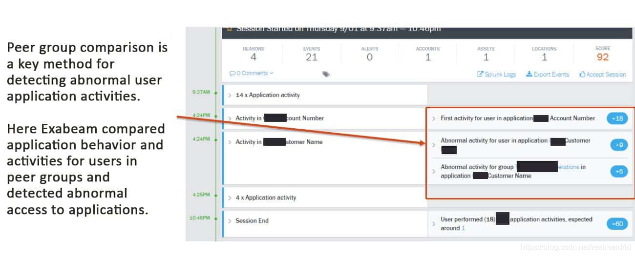以下示例显示Exabeam如何检测金融应用程序中的异常活动和风险活动。
