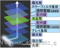 4.帶有共同透明電極薄膜(ITO)的玻璃基版,水平的條紋被蝕刻在基版上,使液晶的排列方向成為水平;