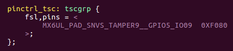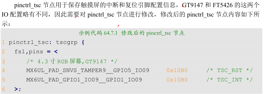 2、例程的设备树修改有误,驱动手册提到对于pinctrl_tsc节点的配置如下: