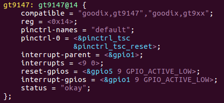 1、直接设置设备树和编写驱动程序是不行的,因为内核里并没有gt91xx系统的驱动文件,需要获取驱动gtxx的驱动文件,重新编译内核。参考连接:https://blog.csdn.net/qq_26943851/article/details/104417858