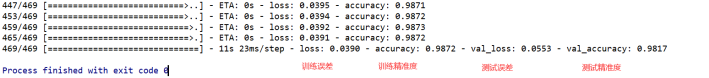 #训练模型的必要配置 model.compile( #优化器选择及lr的数值 optimizer=optimizers.Adam(lr=1e-3), #损失函数选择,均分误差,交叉熵等 loss=tf.losses.CategoricalCrossentropy(from_logits=True), #用于监控训练,并呈现精确度 metrics=['accuracy'] ) #模型训练,从左往右的参数分别是:训练数据集,训练次数,测试数据集,训练多少次便测试一次 model.fit(train_db,epochs=6,validation_data=test_db,validation_freq=2) |