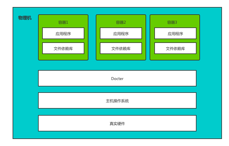 这种做法可以在同一台机器上启动多个应用实例,但每个虚拟机都创建都会将计算机结构一起打包,对于用户来说创建、维护成本也太高了,每个虚拟机都会有操作系统、虚拟硬件也显得这种方式比较重。那有没有更轻的方式呢,答案是有的。