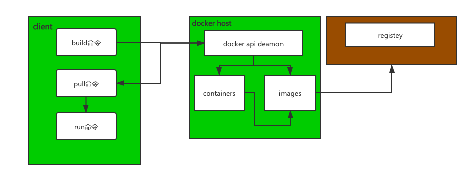 1、client发送命令到docker host被deamon进程所监控。