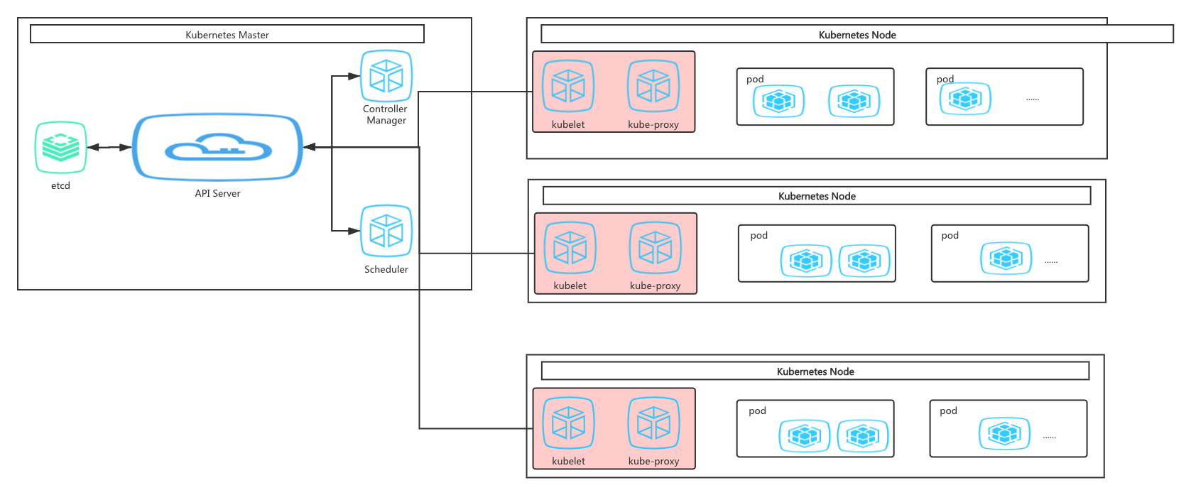 (1)kubelet:负责维护容器的生命周期,同时也负责Volume(CSI)和网络(CNI)的管理;