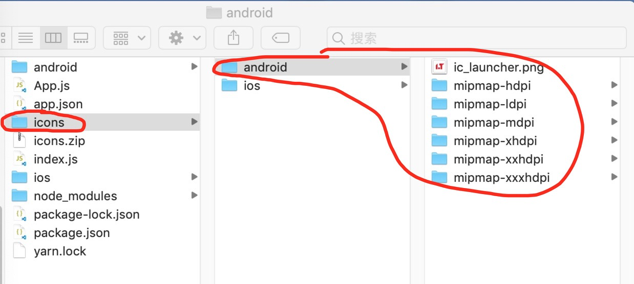 Android: 用图标工场下载的文件,替换 android/app/src/main/res 下对应的图标文件夹