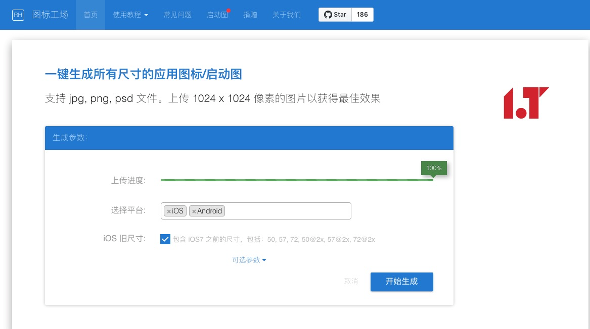 应用图标对尺寸有要求,准备一张1024*1024 的图片,给大家推荐个神器,直接用图标工场一键在线生成,一键下载,然后自直接替换就行。
