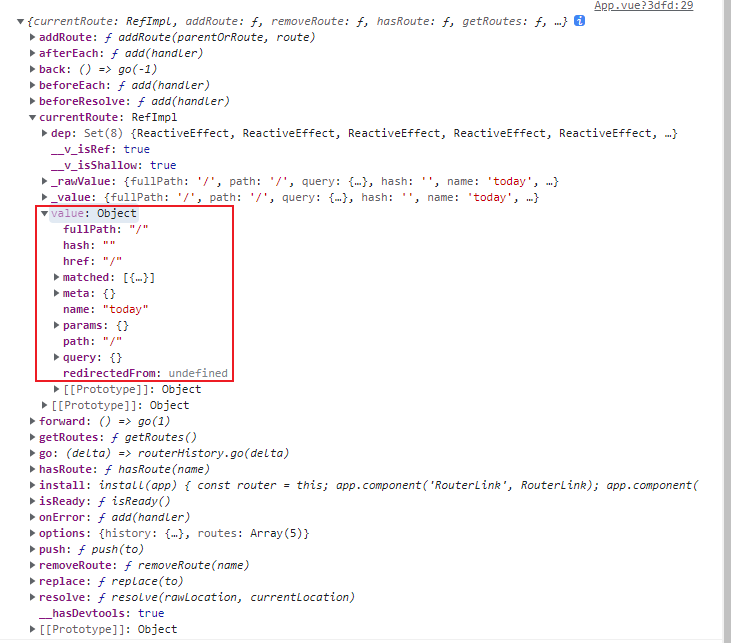 从打印出来的router中可以看见我自己 需要的信息是在currentRoute.value里的,所以直接router.currentRoute.value就可以获取到我要的东西