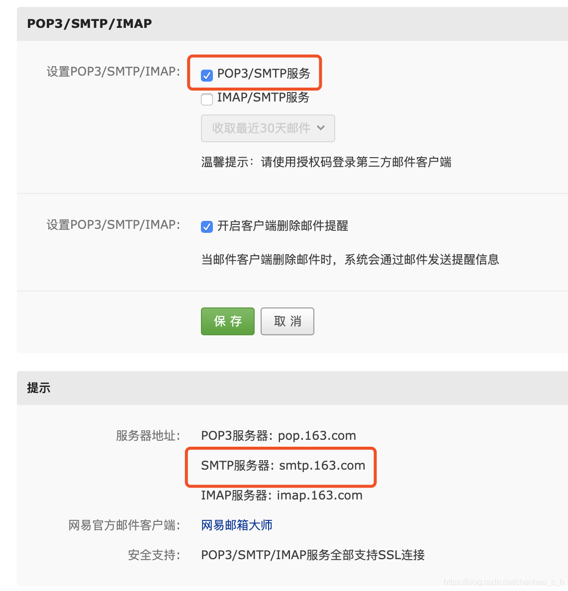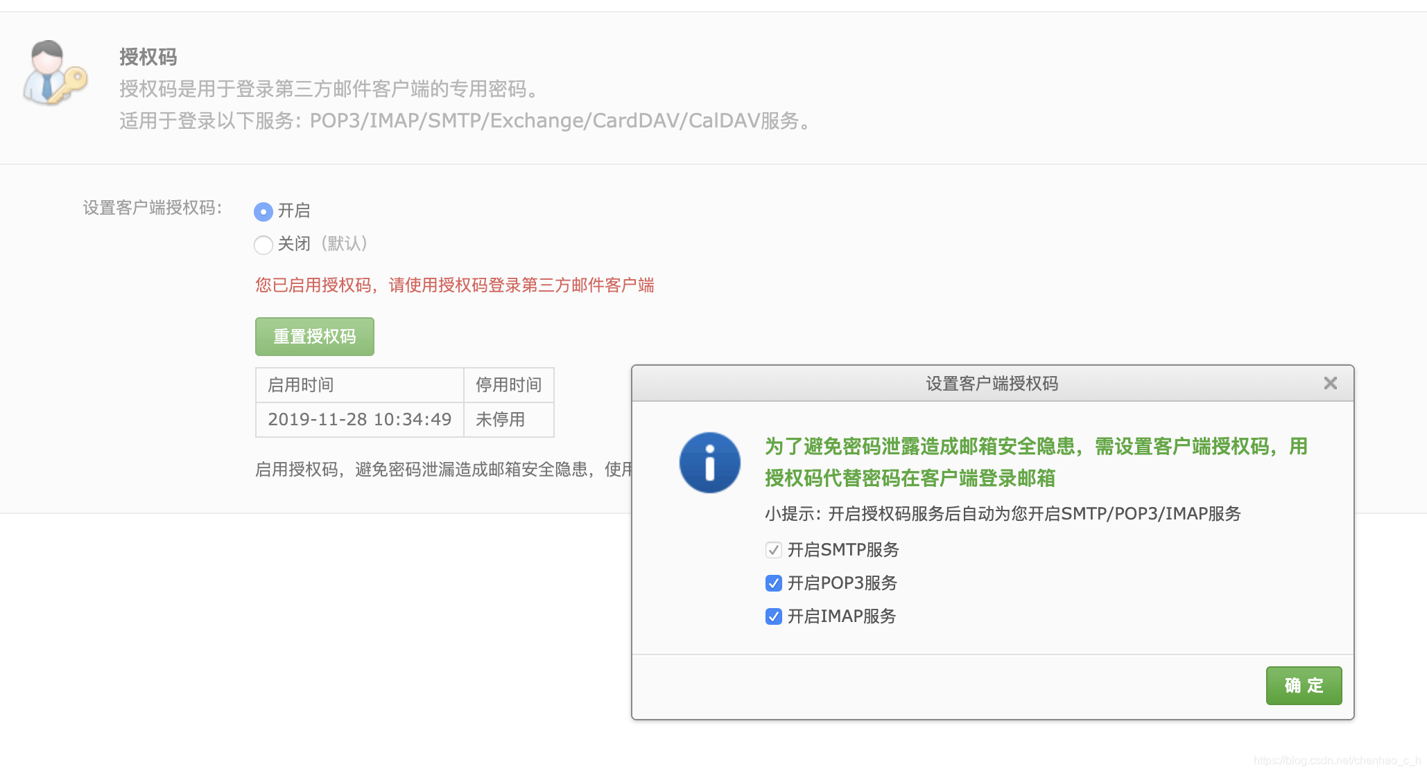POP3/SMTP 取消打钩。然后再点打钩 弹出页面,点击确定
