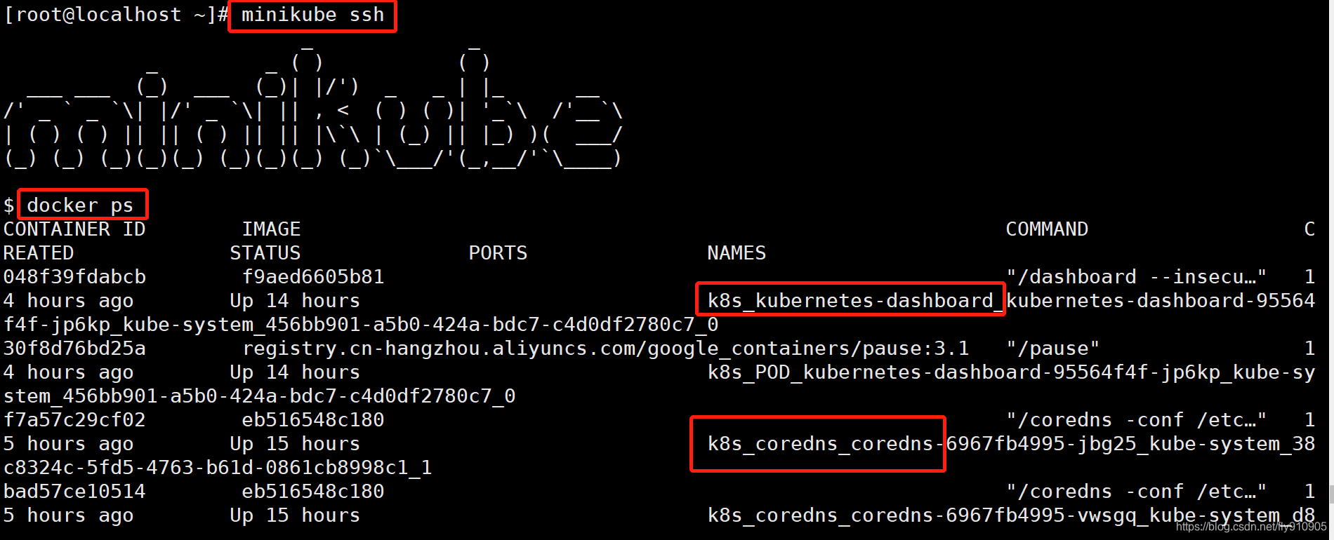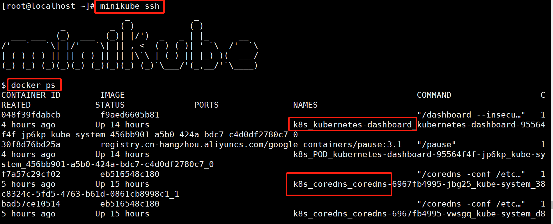 我们可以通过minikube ssh进到虚机里,然后看看是否有一些container运行起来了